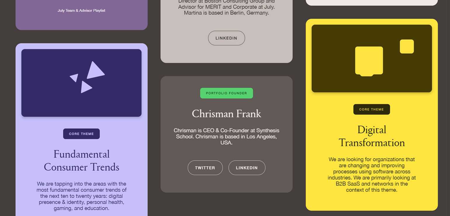 Дизайн на выходе получается акцентным за счёт сложной композиции, но всё ещё остаётся минималистичным, так как используется минимум цветов (которые могут быть суперяркими), один-два шрифта и выдержанная сетка.