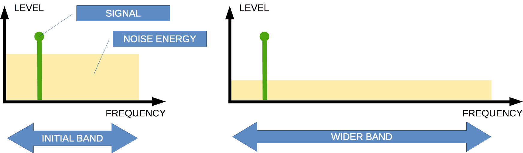 В правой и левой частях изображения площади фигур шума одинаковы. Но фигура, более растянутая по горизонтальной оси, дает более низкий уровень шума.