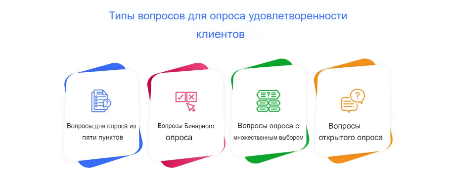 Существуют различные типы вопросов для опроса удовлетворенности клиентов, которые вы можете задать и получить соответствующие ответы от клиентов.