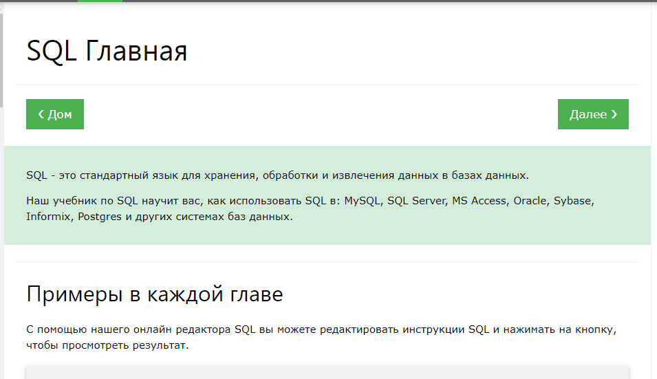 Простой интерактивный учебник, который идеально подходит для начала самостоятельного изучения SQL. Все уроки сопровождаются примерами реального кода, благодаря чему ты сможешь быстро изучить операторы и применить их на практике.