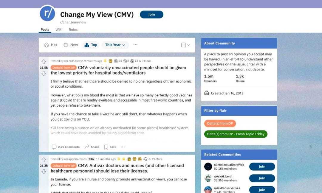 Кто бы мог подумать, что Reddit с его репутацией негативного троллинга и грубых комментариев станет безопасным местом для вдумчивых дискуссий и дебатов в Интернете? Но это именно то, что создало сообщество р/ChangeMyView (CMV) с набором правил, практической модерацией и комментариями с голосованием за и против.