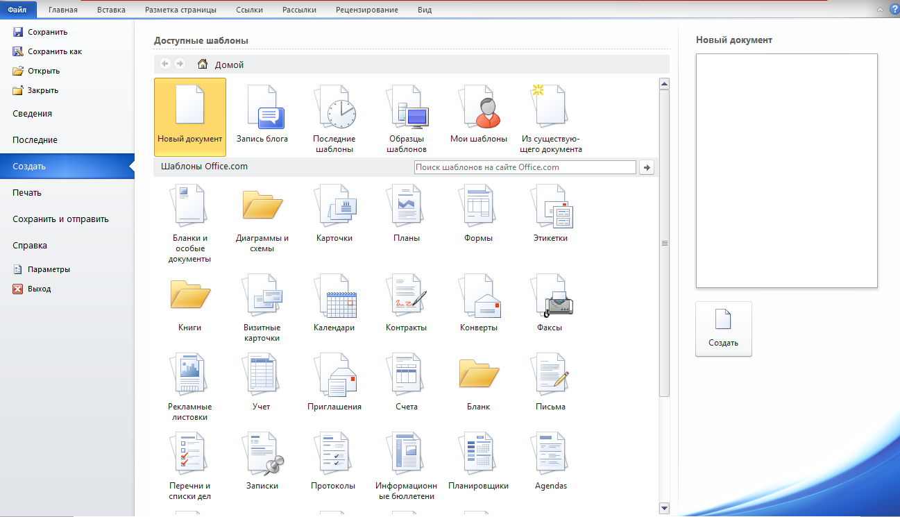 Шаблоны в Word найти просто. Создайте новый текстовый документ, во вкладке Файл найдите строку Создать и перейдите по ней.