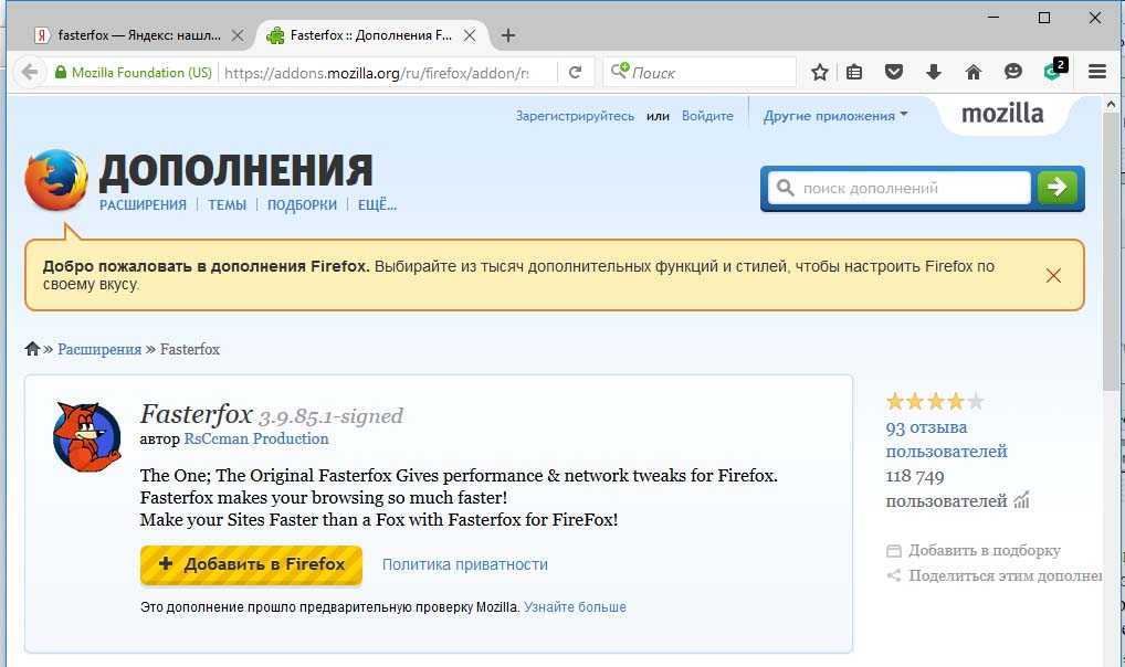 Расширение для Firefox под названием «Fasterfox» использует время бездействия, чтобы заранее сохранить все ссылки на сайте, на который вы зашли в данный момент, для улучшения скорости работы. Fasterfox сохраняется на ваш жесткий диск в виде архива ZIP. Если открыть его двойным щелчком, вы увидите файл «fasterfox-3.9.85-fx.xpi». Для установки расширения откройте этот файл с помощью Firefox. После перезапуска браузера расширение будет установлено.