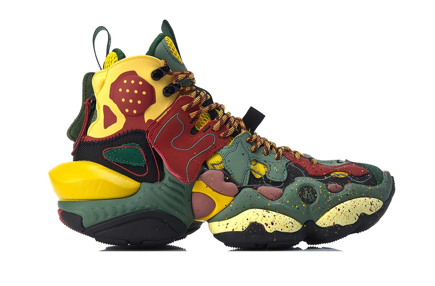Своим силуэтом Titan бренд стремился передать красоту и динамизм национальных парков и пейзажей Китая. Красочный и текстурированный верх создавался благодаря сочетанию замши и текстиля. На заднике прикреплен дополнительный набор завитых шнурков. Сетчатый язычок модели служит для повышения воздухопроницаемости.