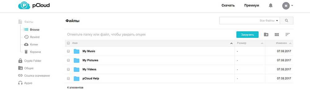 Интерфейс здесь очень логичный, поэтому сориентироваться совсем просто. Можно создавать неограниченное вложенное количество папок, загружать и удалять файлы. Но для начала давайте посмотрим, как увеличить место с 10 до обещанных 100 гигибайт.