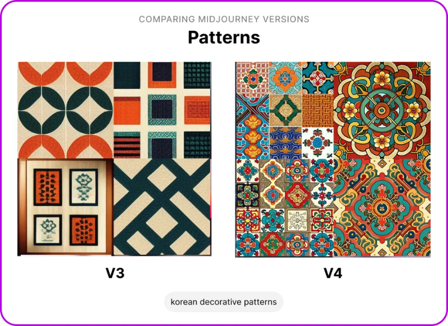 Midjourney V4 генерирует красивые паттерны, которые можно превратить в фон для любого проекта (не говоря уже о создании рисунка обоев для собственного дома). Есть несколько приёмов, которые можно использовать, чтобы создавать бесшовные паттерны: