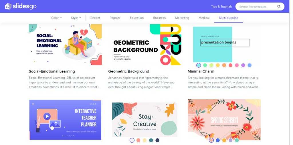 Google Слайды – популярный сайт, который позволяет просматривать, создавать и редактировать файлы презентаций. Работайте с документами с любых устройств, которые имеют подключение к Интернету. На сайте можно найти уникальные наборы бесплатных шаблонов. Чтобы получить доступ к шаблонам, запустите режим создания презентации. В правой части страницы находятся бесплатные темплейты;