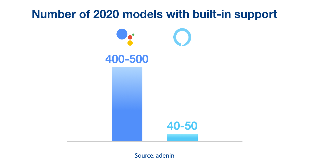 Even though many manufacturers offer their own Alexa skills (to control A/C, Lock status, etc.), Amazon hasn’t been able to convince many of them to integrate Alexa itself into the dashboard. The list for 2020 is growing but it’s still miles behind Google. Google meanwhile is starting to take over the entire OS in cars from GM and Volvo, and you can be sure they’ll lock Amazon out the first chance they get.