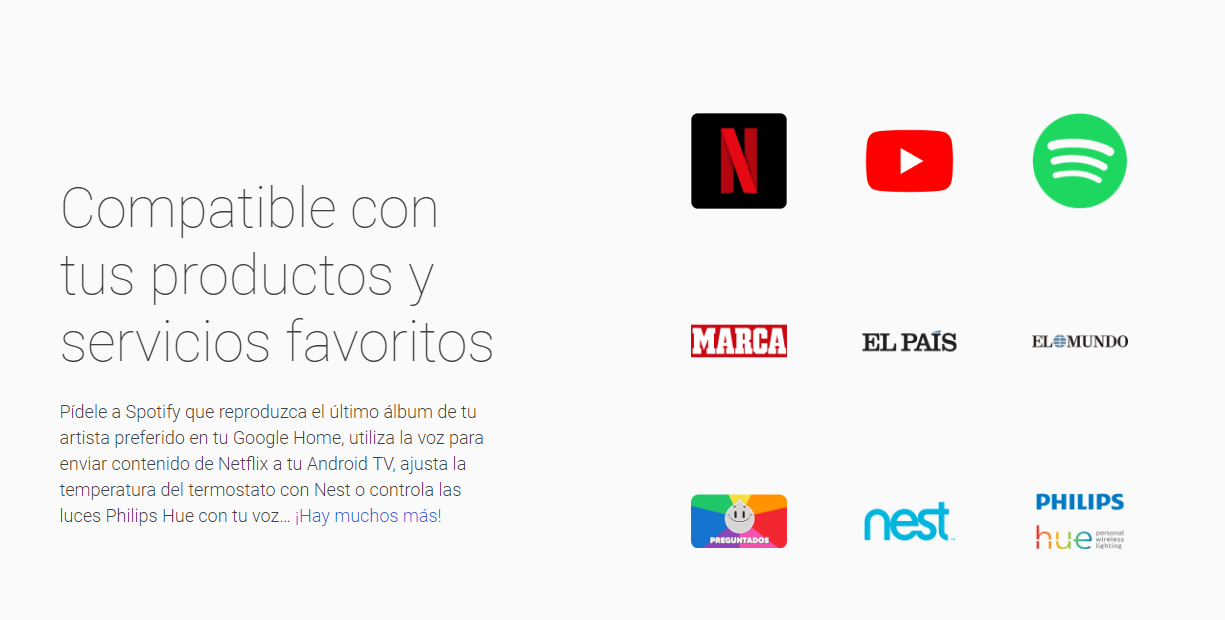 Google Assistant активируется командой «ОК Google», в то время как устройство Amazon делает это просто, когда мы произносим его имя «Alexa». Это может иметь свои преимущества и недостатки, поскольку может случиться так, что речь идет об устройстве Amazon, и оно активировано. С другой стороны, «OK Google» или «Привет, Google» действительно делает разницу между упоминанием и порядком. Стоит также упомянуть использование Chromecast и Chromecast Audio для команд, которые не имеют подключений WIFI самостоятельно и могут использовать их с нашего мобильного телефона через мастера. Знаменитая «Привет, Google, положи Netflix» активируется таким образом, как только мы связали нашу учетную запись Netflix с учетной записью Google Home. В случае SmartTV телевизоры Chromecasts не понадобятся.