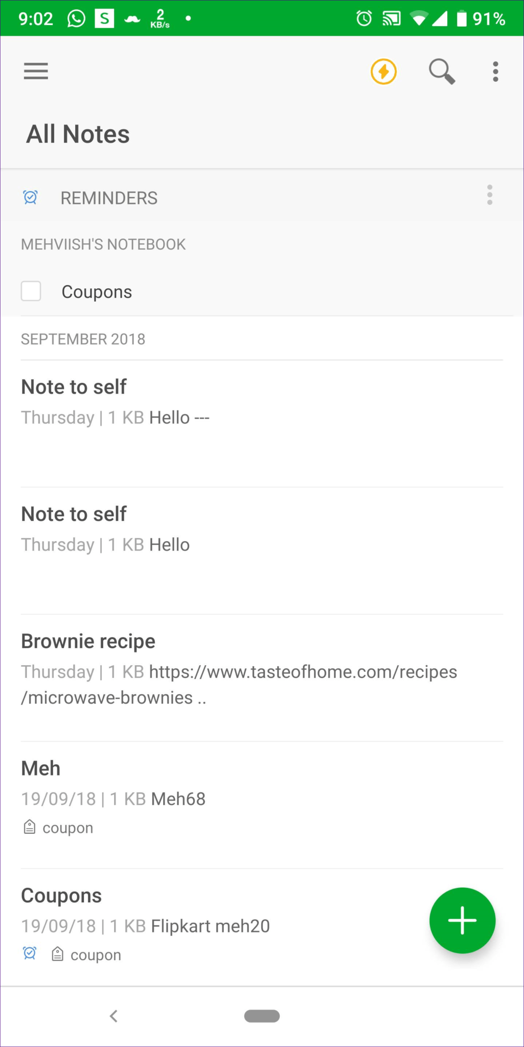 Однако у него есть чрезвычайно полезная функция плавающих заметок, к которым можно получить доступ с любого экрана. Все, что вам нужно сделать, это провести пальцем из нужной области. Кроме того, приложение поддерживает такие функции, как закрепление, напоминание, архивирование, история, блокировка и метки. Он поддерживает только вложения изображений.