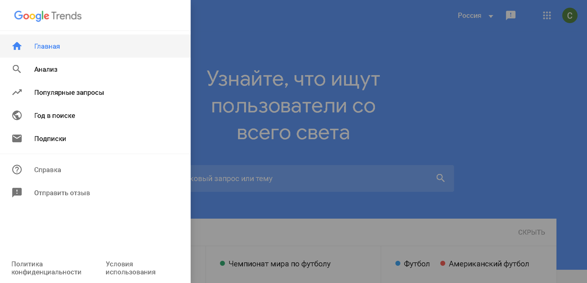 Сервис Гугл Трендс абсолютно бесплатен для пользователей. Для начального доступа регистрация не требуется, но чтобы полностью пользоваться инструментарием ресурса, необходимо войти в аккаунт Google. После этого всего за несколько минут, используя простейшие настройки в интуитивно понятном интерфейсе, можно провести анализ и получить следующую информацию: