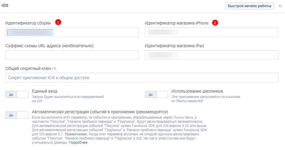 Вы не настроили приложение на нужную вам ОС при регистрации в Facebook for Developers. Приложение как продукт разработки может быть одно, но для него необходимо зарегистрировать все операционные системы, на которых вы будете вести рекламные кампании. Не нужно регистрировать два отдельных приложения с разными ОС в Facebook for Developers, так как это может вызвать путаницу и замедлить процесс настройки.