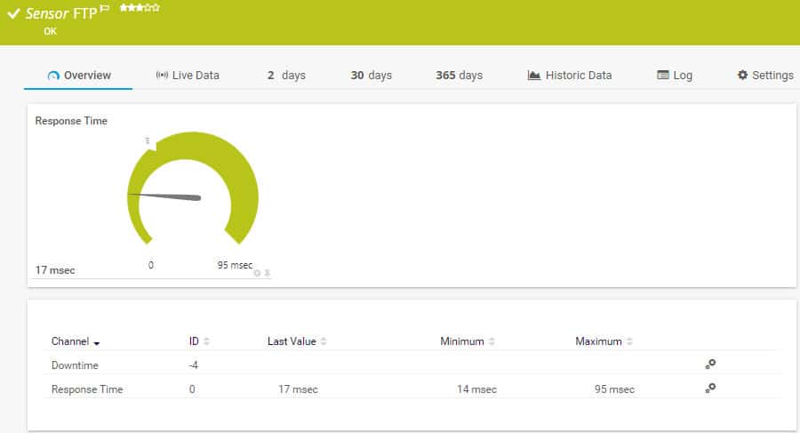 Одна проблема со стандартным FTP и его безопасными производными состоит в том, что они не предоставляют много данных для анализа. Большинство стандартных программ FTP доступны в операционной системе бесплатно, но могут быть улучшены с помощью пакета мониторинга. Например, Paessler PRTG это общесистемный пакет мониторинга, который состоит из «датчиков», которые являются отдельными мониторами. Вы настраиваете услугу, выбирая, какие датчики включить.