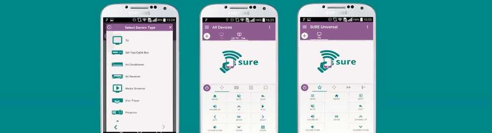 Как следует из названия, Sure Universal Remote – универсальный пульт для всех телевизоров. В этом случае пользователь самостоятельно определяет способ подключения (через Wi-Fi или ИК-порт). В дополнение к основным функциям здесь можно использовать телефон в качестве клавиатуры для ТВ или как мышь для просмотра меню.
