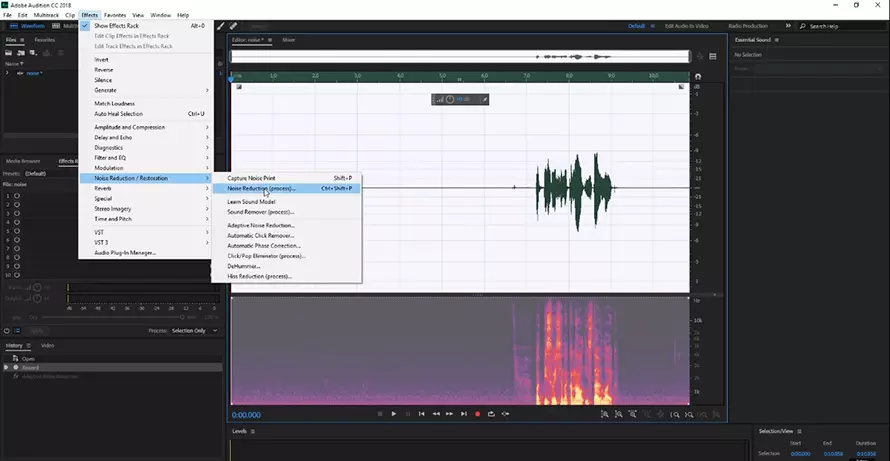 Adobe Audition неизменно входит во все рейтинги лучших программ для звукозаписи. Софт используется в профессиональной работе, позволяя создавать озвучки для фильмов, готовить подкасты, записывать песни. Правильно выстроив параметры захвата, вы сможете убрать фоновый шум непосредственно при записи звука с микрофона. Среди многочисленных функций аудиоредактора имеется, конечно же, и чистка уже готовых звукозаписей от помех – вы сможете без труда снизить уровень шума в звуковой расшифровке видеофайла или в начитке лекции на телефоне.
