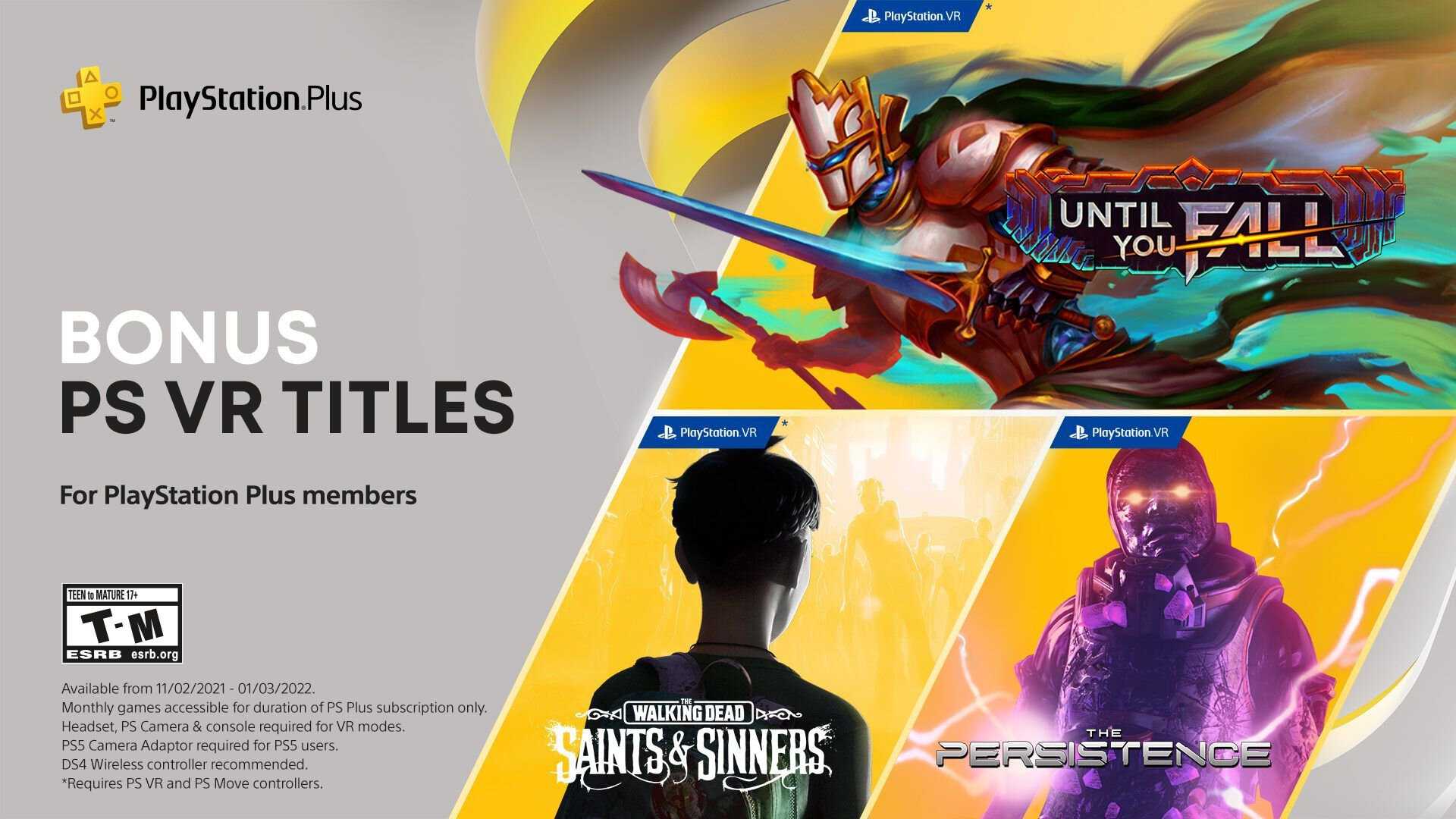 - Ноябрь – Kingdoms of Amalur: Re-Reckoning (72), Knockout City (PS4, PS5 – 80), First Class Trouble (PS4, PS5 – 50), The Walking Dead: Saints & Sinners (79), The Persistence (78), Until You Fall (85)