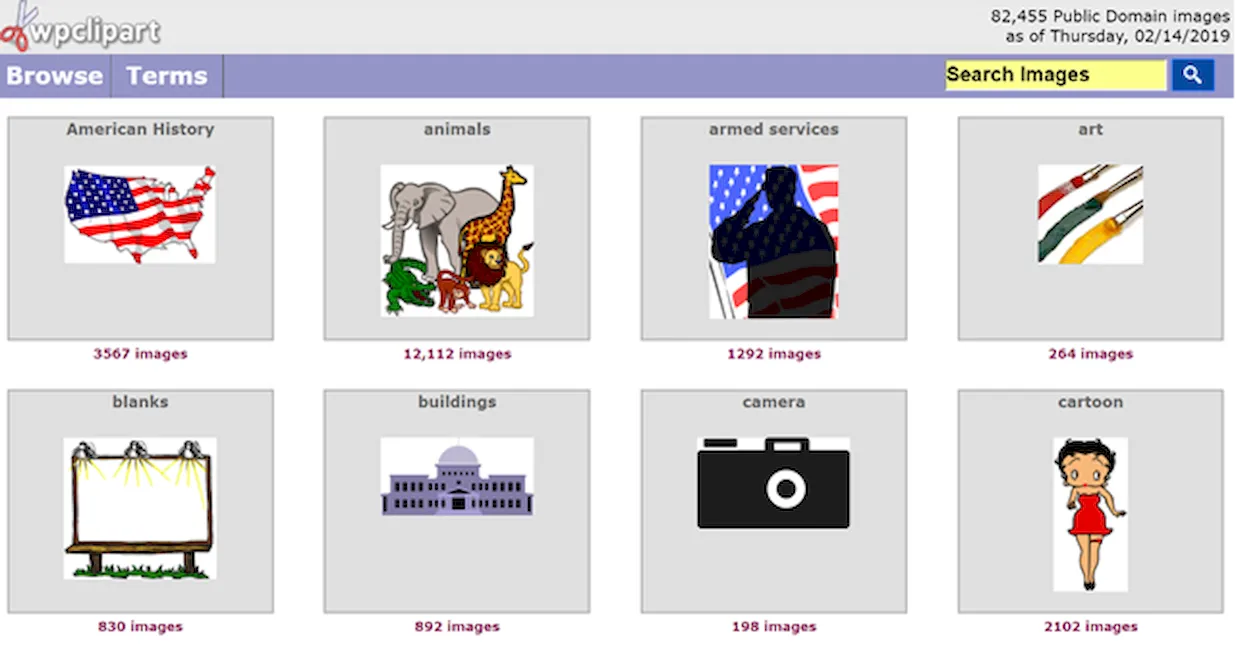 Если вам нужен клип-арт для какого-либо проекта, о котором вы только можете подумать, вы, вероятно, сможете найти его в WPClipart – хранилище из более чем 80000 бесплатных, высококачественных изображений и фотографий для общего пользования.