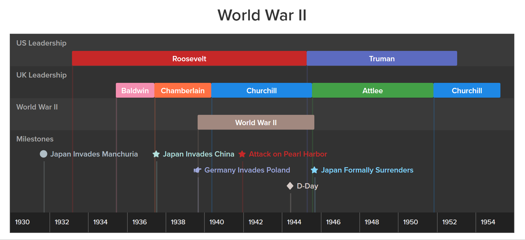 Это особенно важно помнить при сравнении двух лент времени, когда временные промежутки могут перекрывать друг друга. Лента времени легче для восприятия, чем календарь