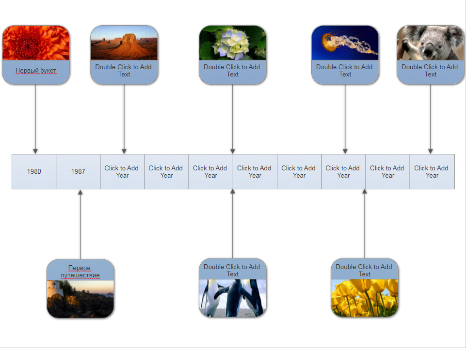 Временные промежутки настраиваются произвольно и зависят от того, в каком месте на вертикальной оси вы нажмете кнопку «плюс». Инструмент позволяет рассказывать различные медиаистории, но визуально проект будет выглядеть как основанный на хронологии.