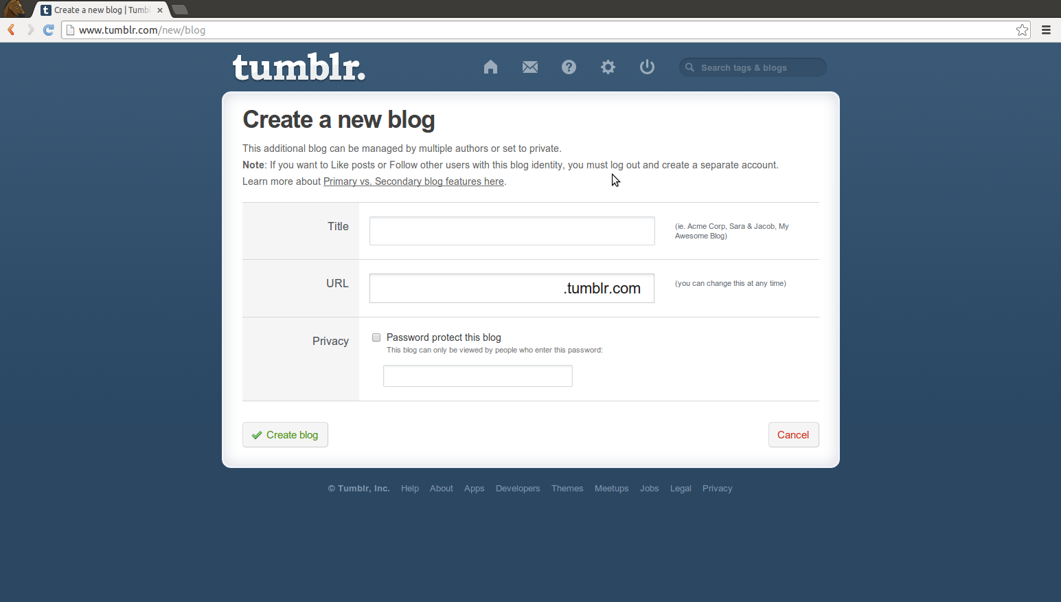 Вы можете создать новый, вторичный блог. У вторичного блога есть ограничения, он не делает всего, что делает первичный. Но это многое делает. Вы можете иметь несколько пользователей на нем. Вы можете использовать его по-разному. Вот так много людей управляют несколькими Tumblrs.
