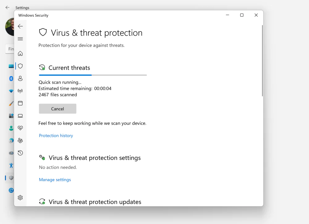Хотя антивирусная программа Microsoft Defender всегда работает в фоновом режиме, рекомендуется проверить ее состояние и убедиться, что для нее установлены последние обновления. И конечно же, хотя бы изредка заглядывайте и проверяйте свое устройство на наличие вирусов и угроз.