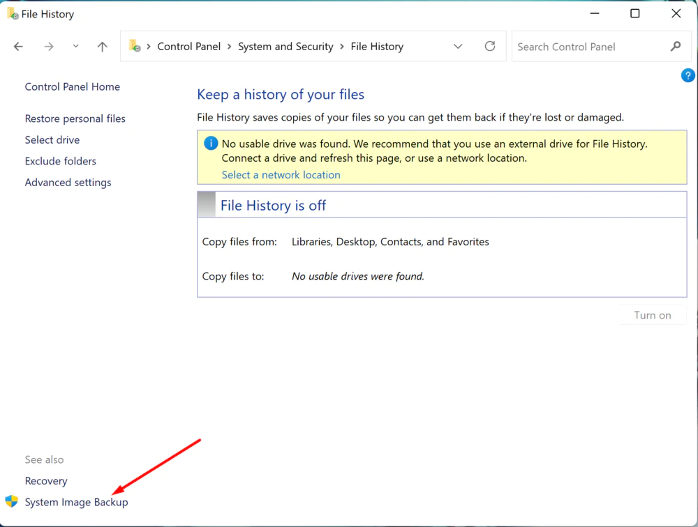 Вы можете использовать множество доступных сторонних программных продуктов. Однако, в Windows 11 по-прежнему есть возможность использовать привычный инструмент резервного копирования образа системы, позволяющий создавать полную резервную копию во внешнем хранилище, которое можно отключить и сохранить в безопасном месте. Следует отметить, что официально Microsoft прекратила поддержку функции резервного копирования, но она по-прежнему доступна для создания временной полной резервной копии.
