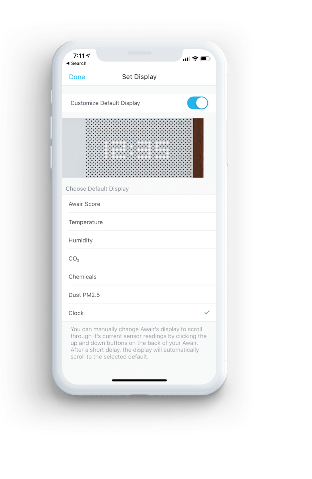 You can also change the default face of the device, depending on what type of data you’re interested in at a glance. I tend to switch between the Awair score and the clock for the most part.