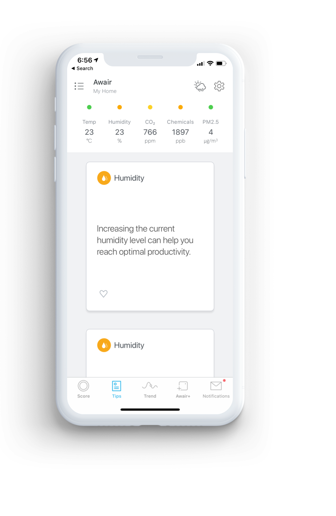 In the app, you can also switch between air quality preferences, so you can set it to general, or view ratings for allergy sufferers, sleep, productivity, or babies. For example, if carbon dioxide is too high, then you’ll get a lower overall score if you have it set to monitor for productivity.
