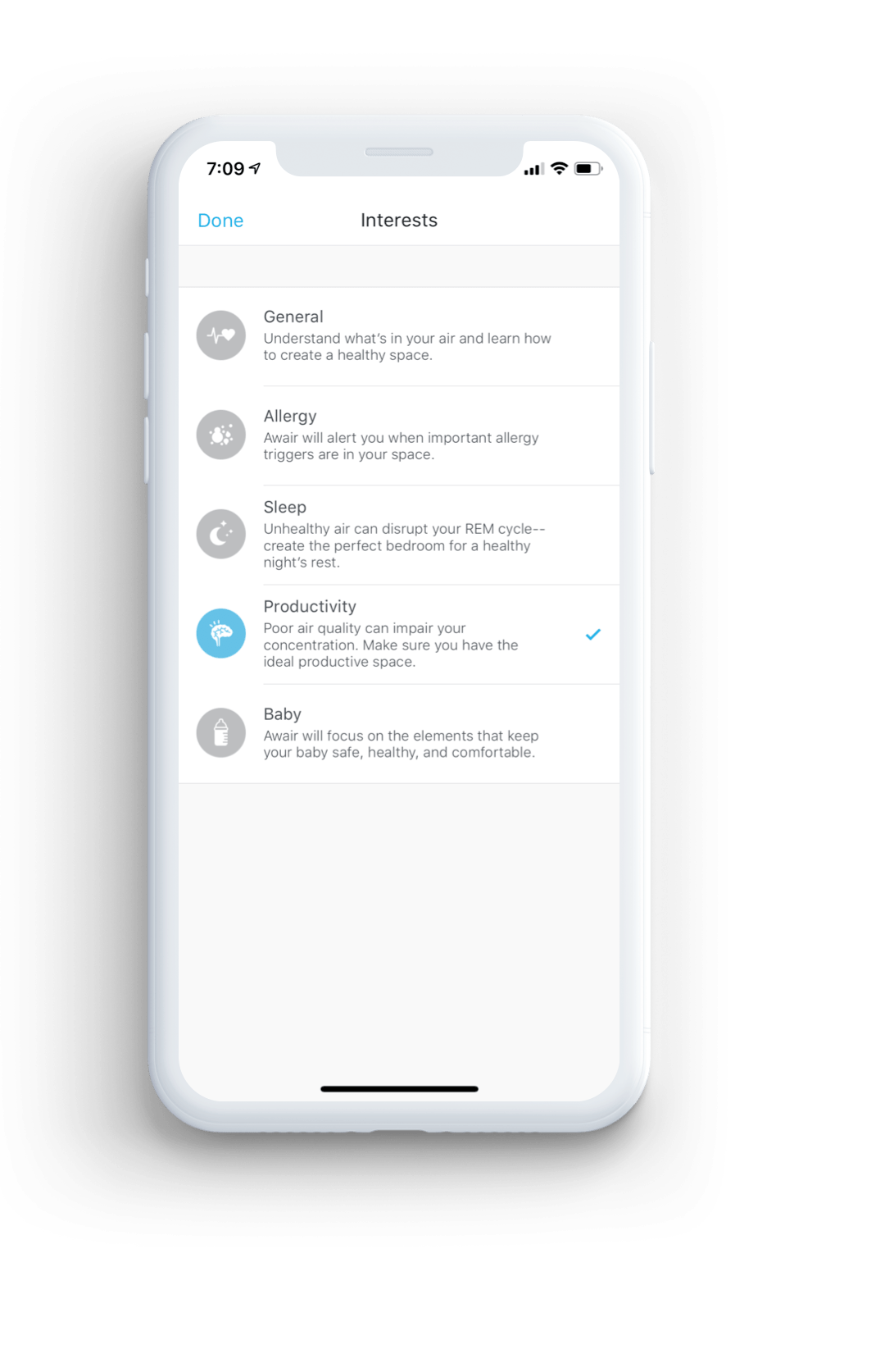 Another thing I recently discovered (although somewhat hidden in the settings section in the app) is the ability to change your interests for the Awair readings, whether it’s to focus on allergies, sleep, productivity, or the best air quality in the babies room.