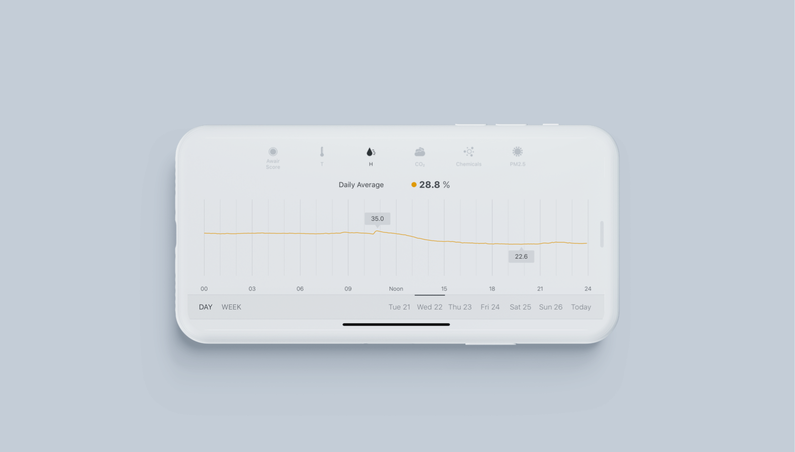 Вы можете увидеть долгосрочные тенденции в приложении с аккуратными небольшими диаграммами, показывающими изменения температуры, влажности и химических веществ в течение нескольких часов каждый день. Тем не менее, мы бы хотели, чтобы приложение разделяло «химические вещества» на конкретные вредные вещества, чтобы мы могли точно видеть, что влияет на наш воздух.