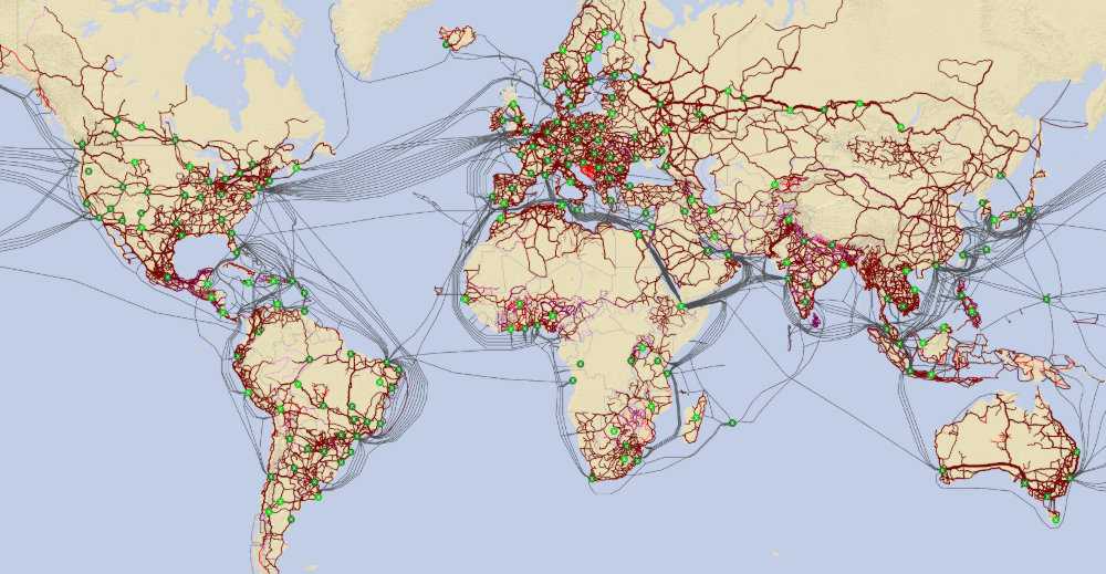Интернет образуется из множества оптоволоконных кабелей, которые соединяют вместе несколько небольших сетей. Эти кабели передают информацию из одной сети в другую в виде оптических сигналов. Вся наша планета покрыта интернет-кабелями, кроме Антарктиды. При этом многие расположены под водой, чтобы покрывать огромные расстояния. Например, длина кабеля Atlantic Crossing 1 (AC-1), который связывает США с Европой, составляет 14 000 км.
