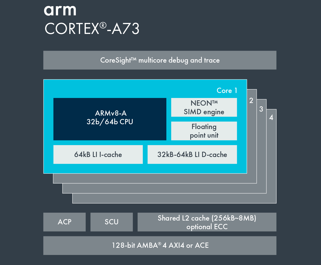 На стороне ЦП этот восьмиъядерный процессор объединяет четыре ядра ARM Cortex A73, выступающих в качестве ядер производительности, и четыре ядра ARM Cortex A53, выступающих в качестве ядер эффективности. Оба этих кластера ядра работают на частоте 2, 1 ГГц и 2, 0 ГГц соответственно.