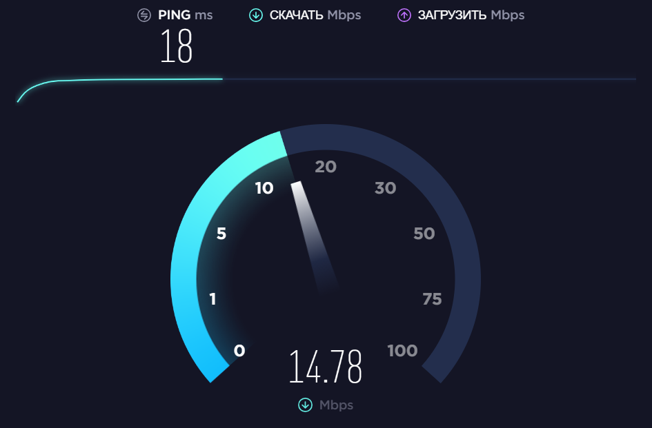 Показатели практически не отличаются от измерений в Speedtest.net. Пинг был 601 мс.