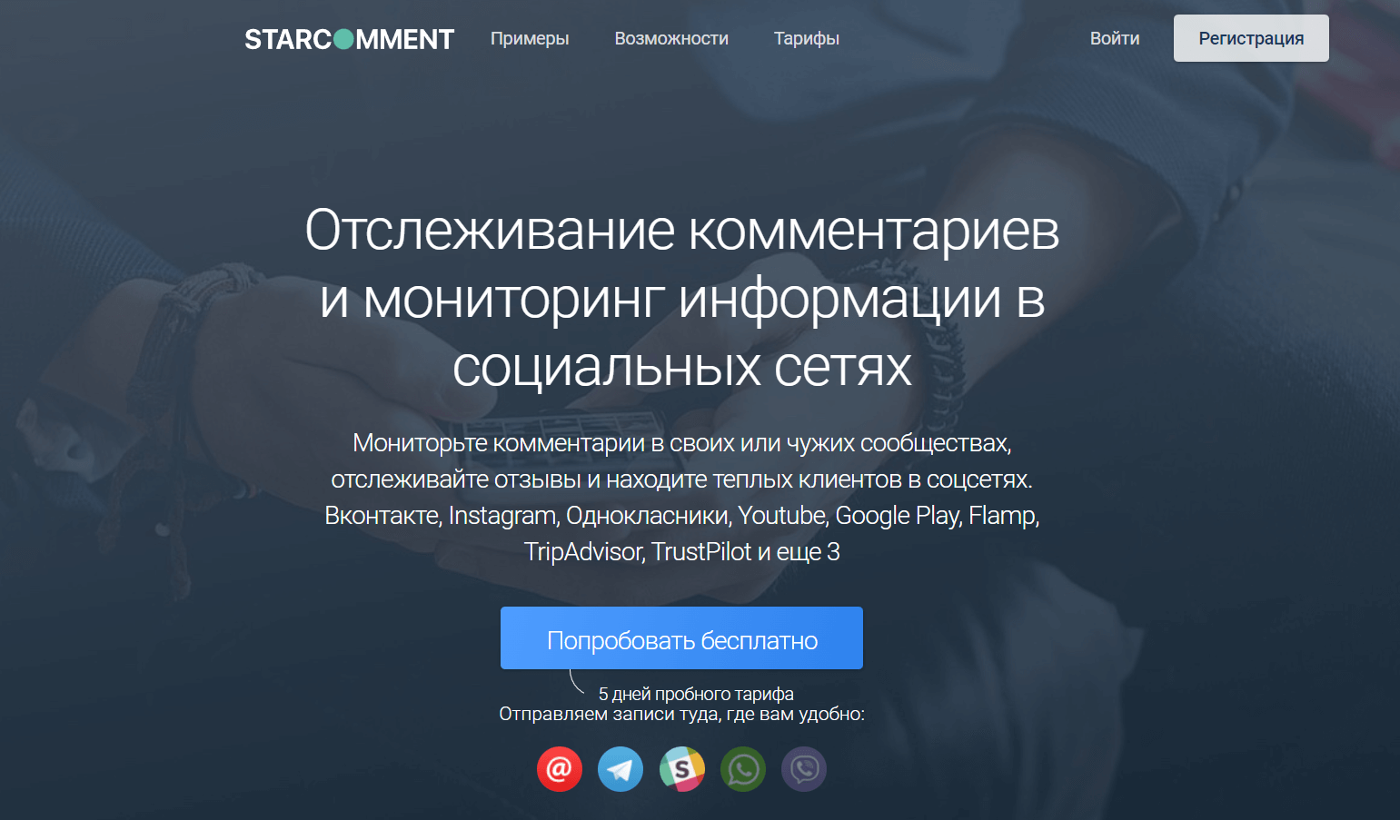 Star Comment работает аналогично Chotam — ищет упоминания в соцсетях и присылает уведомления на почту или в мессенджер. Также система позволяет: