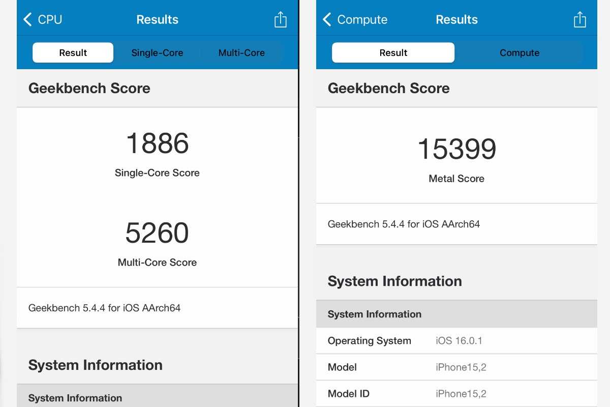 Вот результаты тестирования процессора iPhone 14 Pro в Geekbench 5: