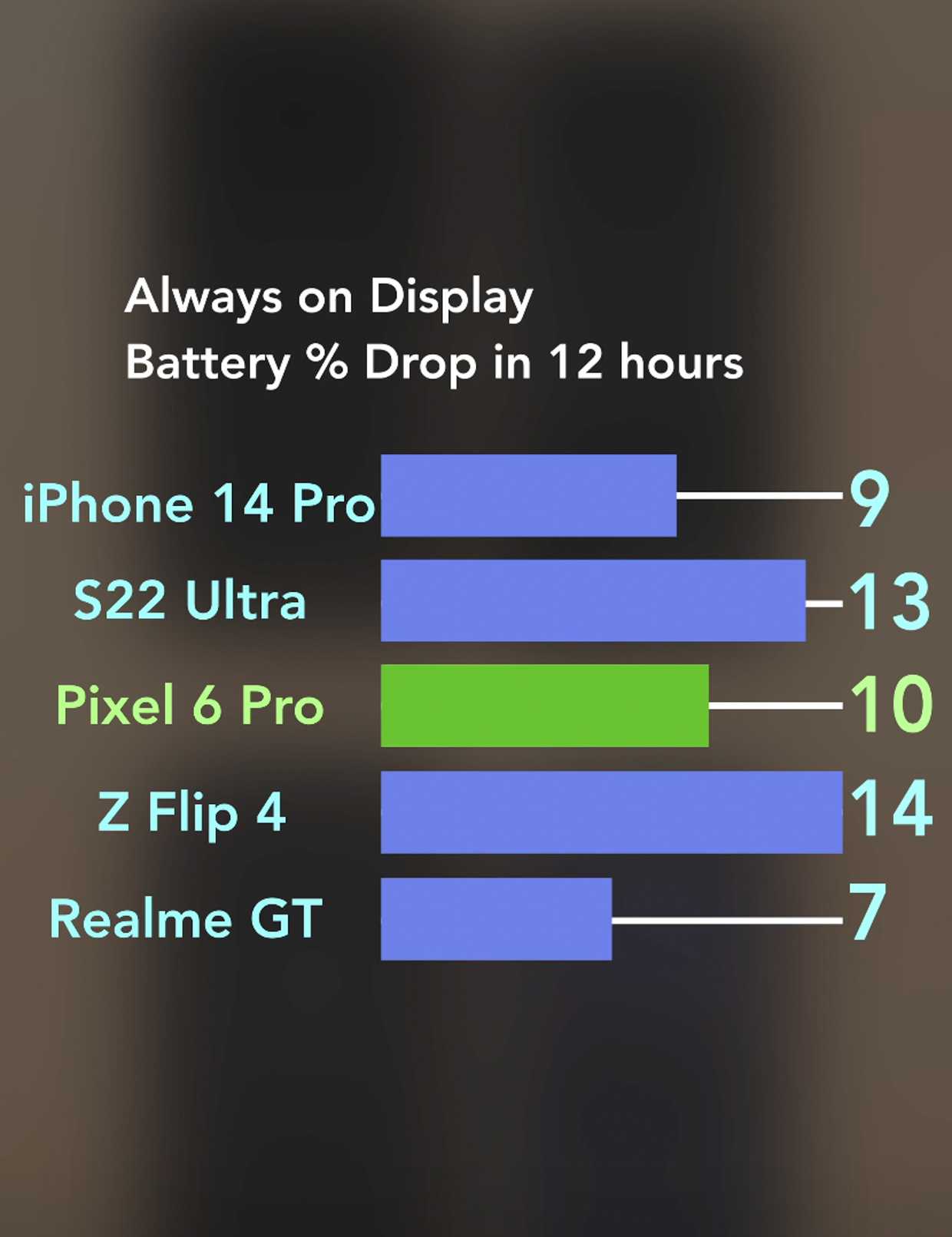 Другой тест. Все смартфоны были со своим Always On и в режиме полёта