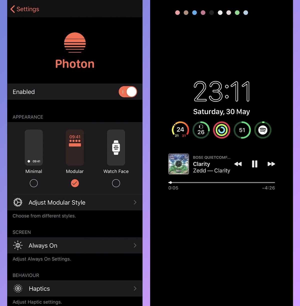 Реализовать эту идею можно на iPhone с джейлбрейком при помощи твика Photon. Разработчики позволяют выбрать один из трех вариантов оформления панели на выключенном экране: минималистичный индикатор, аналог стандартного экрана блокировки или панель в стиле Apple Watch.
