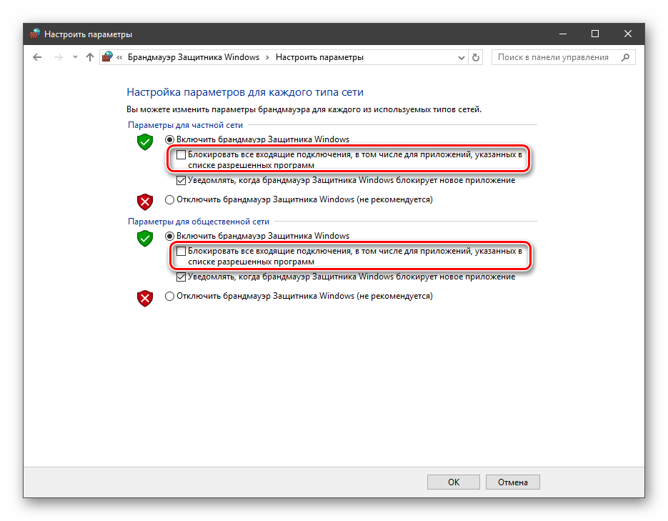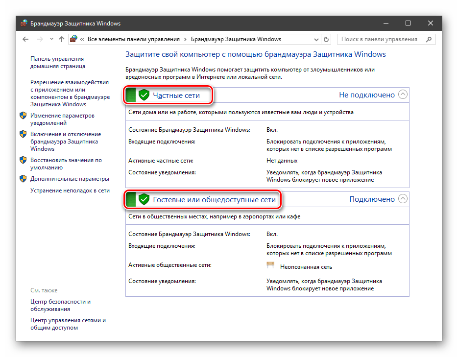 Активировать брандмауэр или отключить его можно, перейдя по соответствующей ссылке в разделе настроек: