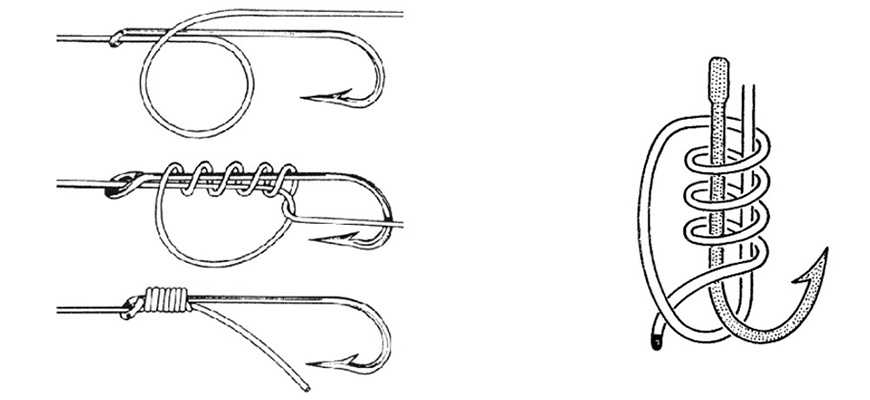 Если используется крючок без ушка, то для него лучше использовать описанные ниже виды рыболовных узлов.