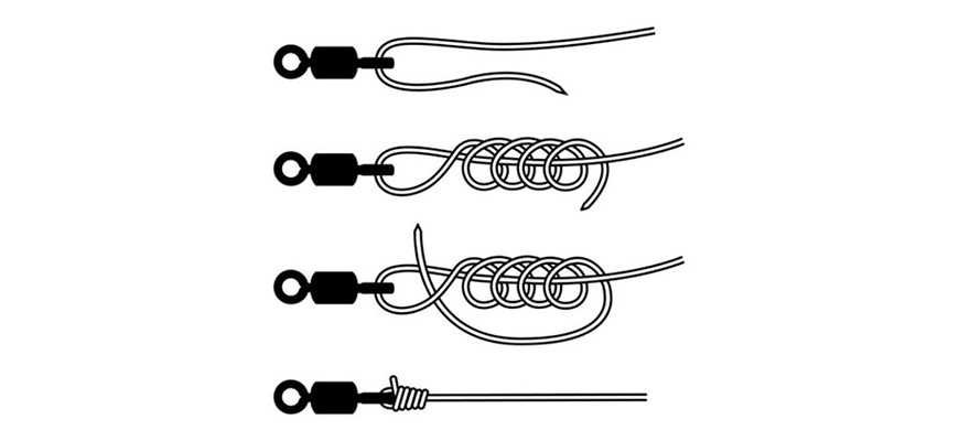 Широко применяется для присоединения катушки, вертлюгов, крючков к поводкам: