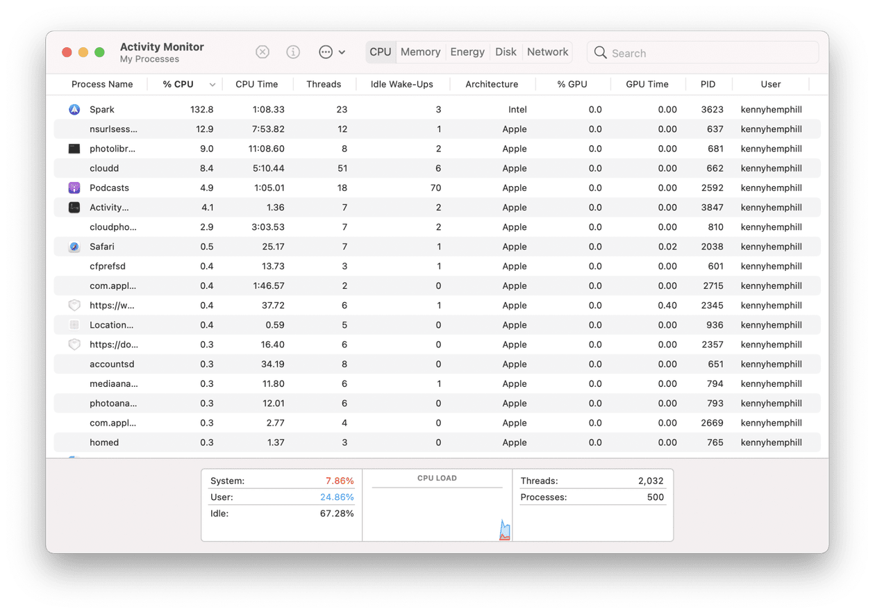 Если Mac чувствует себя вялым, самый простой способ быстро увидеть, активно ли что-то потребляет ресурсы на Mac, — это Activity Monitor.
