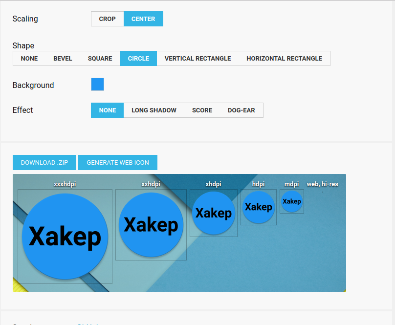 На самом деле иконку можно сгенерировать. Есть замечательный веб-сервис Android Asset Studio, с помощью которого буквально за пару минут ты получишь красивую иконку во всех возможных разрешениях. В качестве основы можно взять подготовленную тобой картинку, просто написать текст или, что лучше всего, выбрать из предоставленного сервисом клипарта. Также ты сможешь задать стиль иконки (круглая, квадратная, в стиле iOS…), цвет, настроить тени и другие параметры. В результате в твоем распоряжении появится архив , который необходимо развернуть в каталог . Обязательно создай веб-иконку, нажав на кнопку «Generate web icon». Она тебе понадобится.