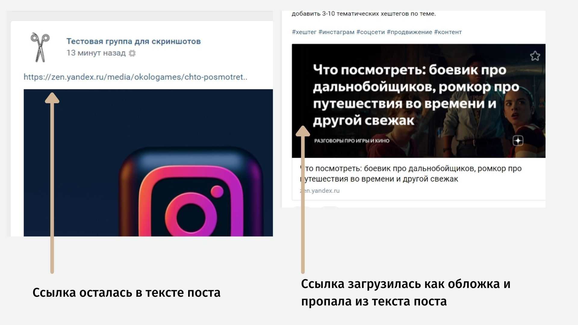 Функция удобна тем, что вы можете указать ссылку в специальном окне «Ссылка», и при публикации поста она преобразуется в кликабельную.