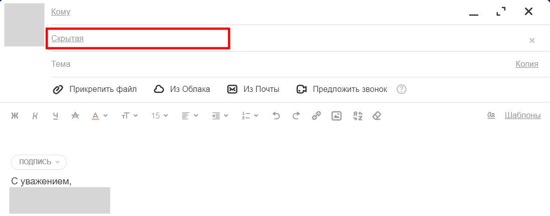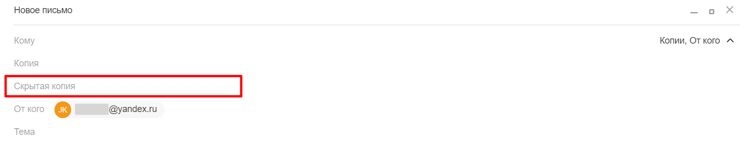 Скрытая копия в Яндекс Почте — перечисленный адреса в этом поле получат письмо так, будто вы отправили персонально каждому.