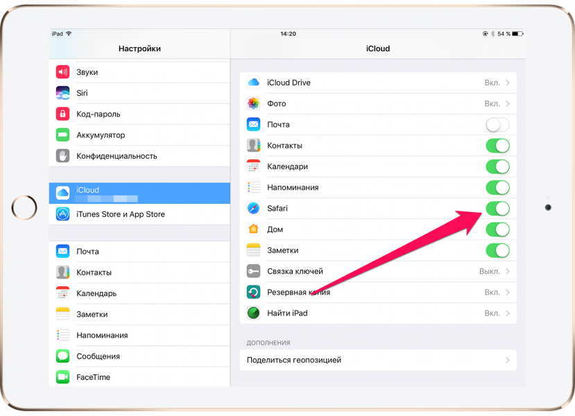 На iPad синхронизация включается аналогичным образом, а вот чтобы данные копировались еще и в браузер на Mac, нужно выполнить следующие действия: