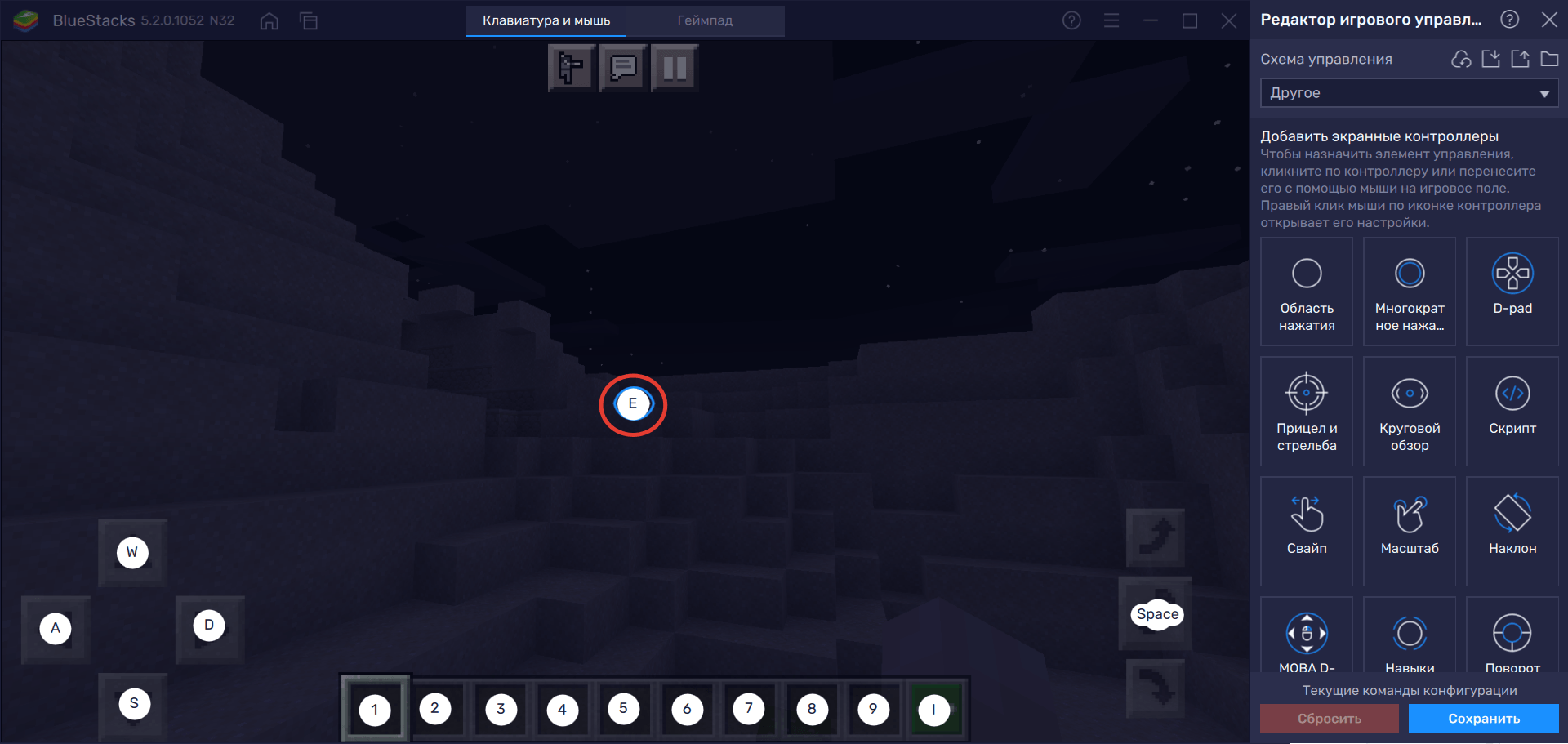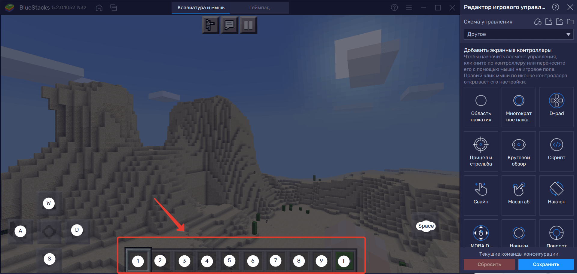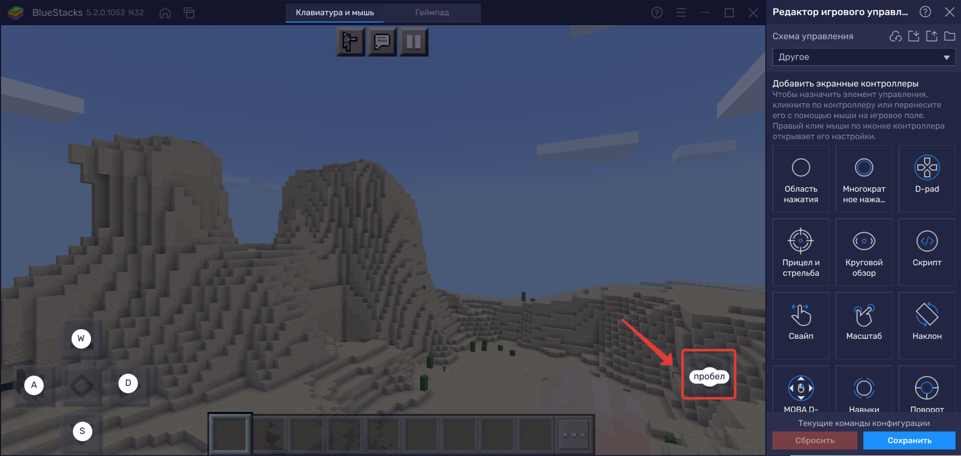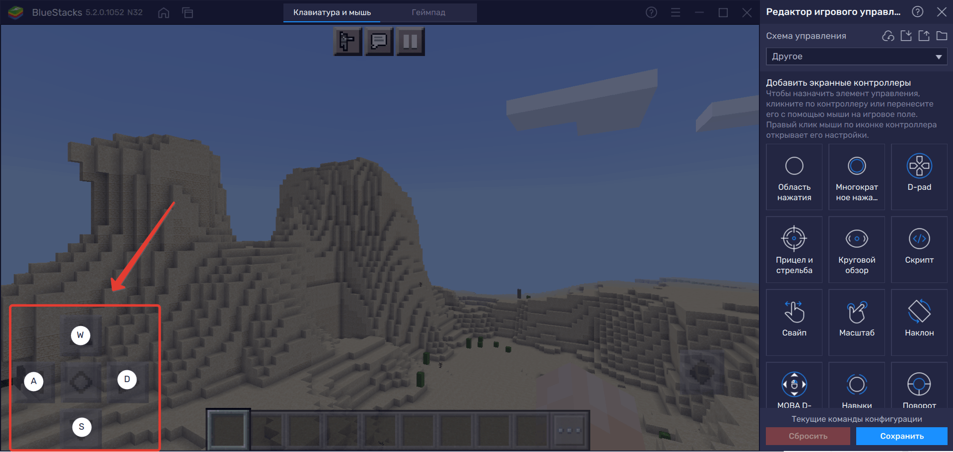 После того как вы подготовили схему управления, обязательно нажмите на кнопку «Сохранить». Теперь выключите боковую панель редактора и приступите к игре!