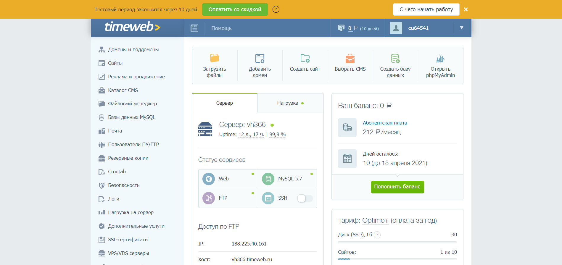 хостинг-эккаунту, тогда все можно сделать очень быстро. Буквально пара