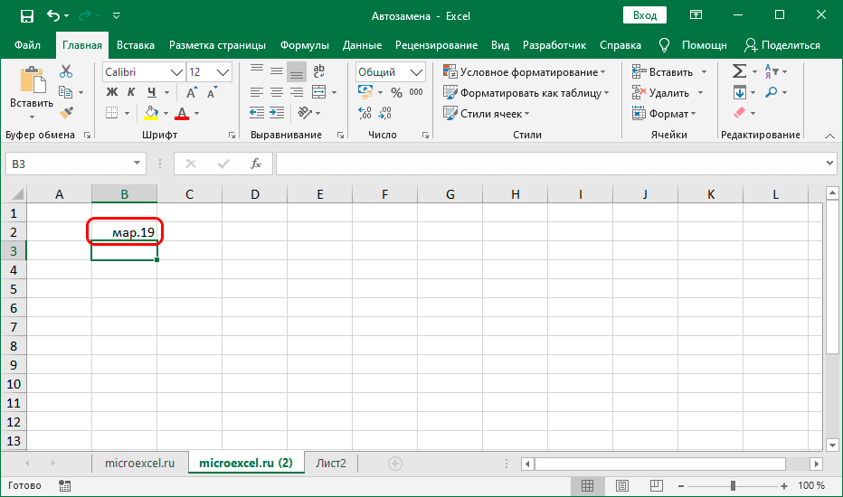 Нам же нужно сохранить в ячейке исходные данные, которые мы ввели. В подобных ситуациях необходимости деактивировать автозамену нет. Вот, что мы делаем: