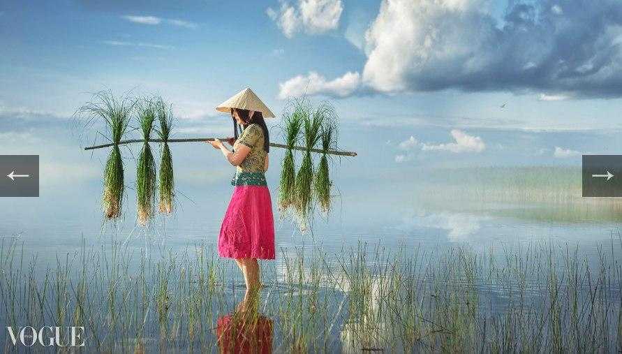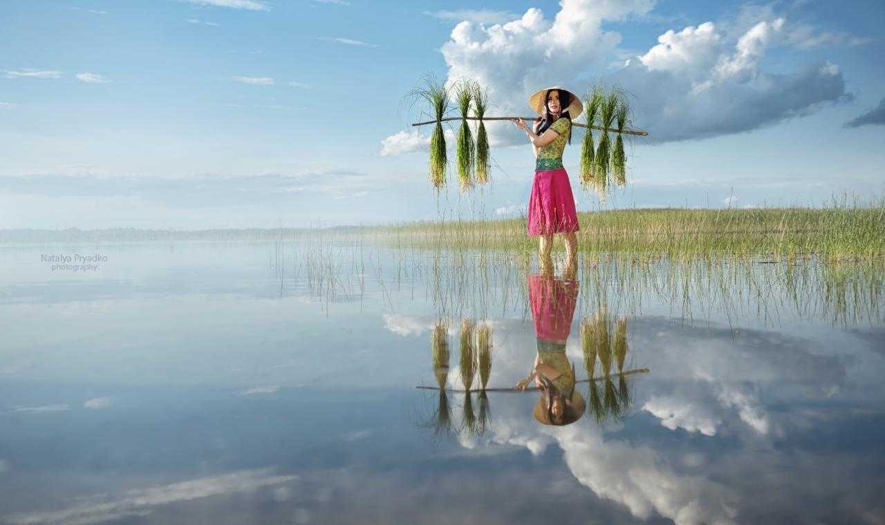 На фотослете-2019 Наталья Прядко проводила воркшоп на азиатскую тему. Было отснято много кадров в разных ракурсах. Но журнал Vogue опубликовал именно тот кадр, в котором сборщица риса упирается в край кадра. Такая композиция передает ощущение усталости, большого объема проделанной работы, трудного пути, который остался позади. И нет просвета впереди. Непростая история. Сравните этот кадр с другими фото из серии.