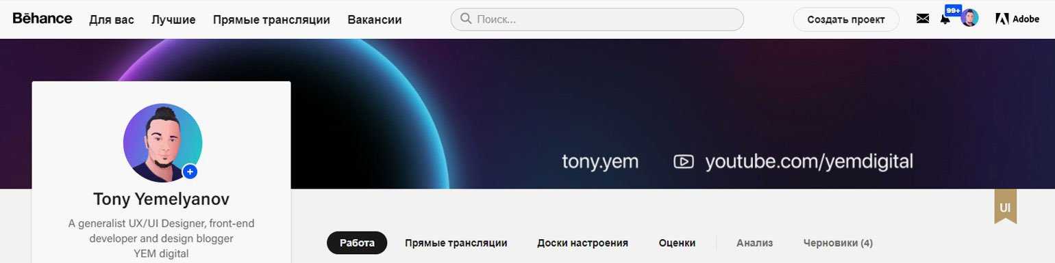 Пример шапки Behance-профиля